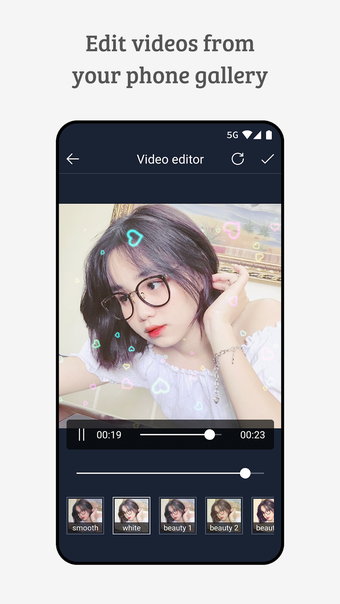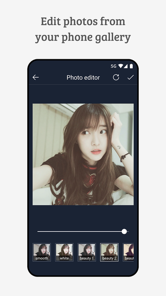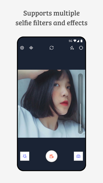 Portrait Selfie Camera also allows you to add your own special touch to the recording. Add a background soundtrack, choose from various beautiful effects, or choose from a selection of popular effects.